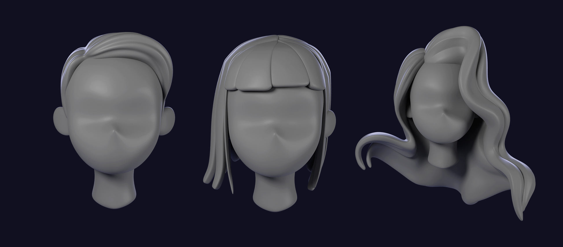- 1 Character Head Base Mesh with three included hairstyles and base forms (ZTL & FBX)